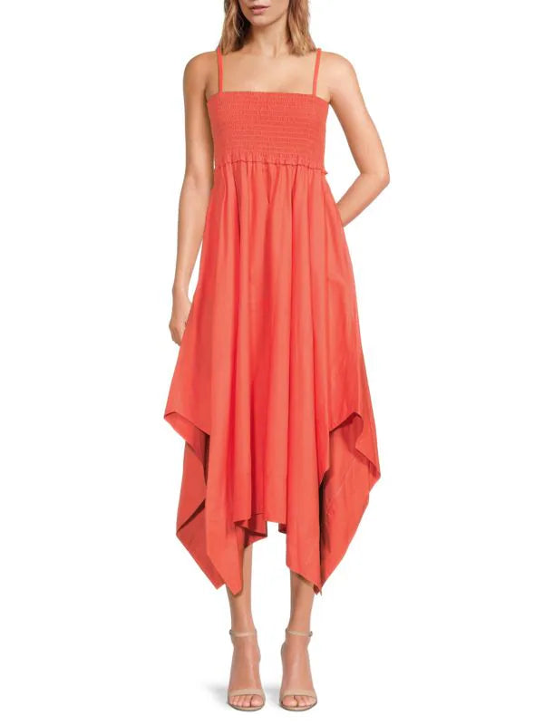 A.L.C. Adriana Handkerchief Hem Midi Smocked Dress - Spiced Coral