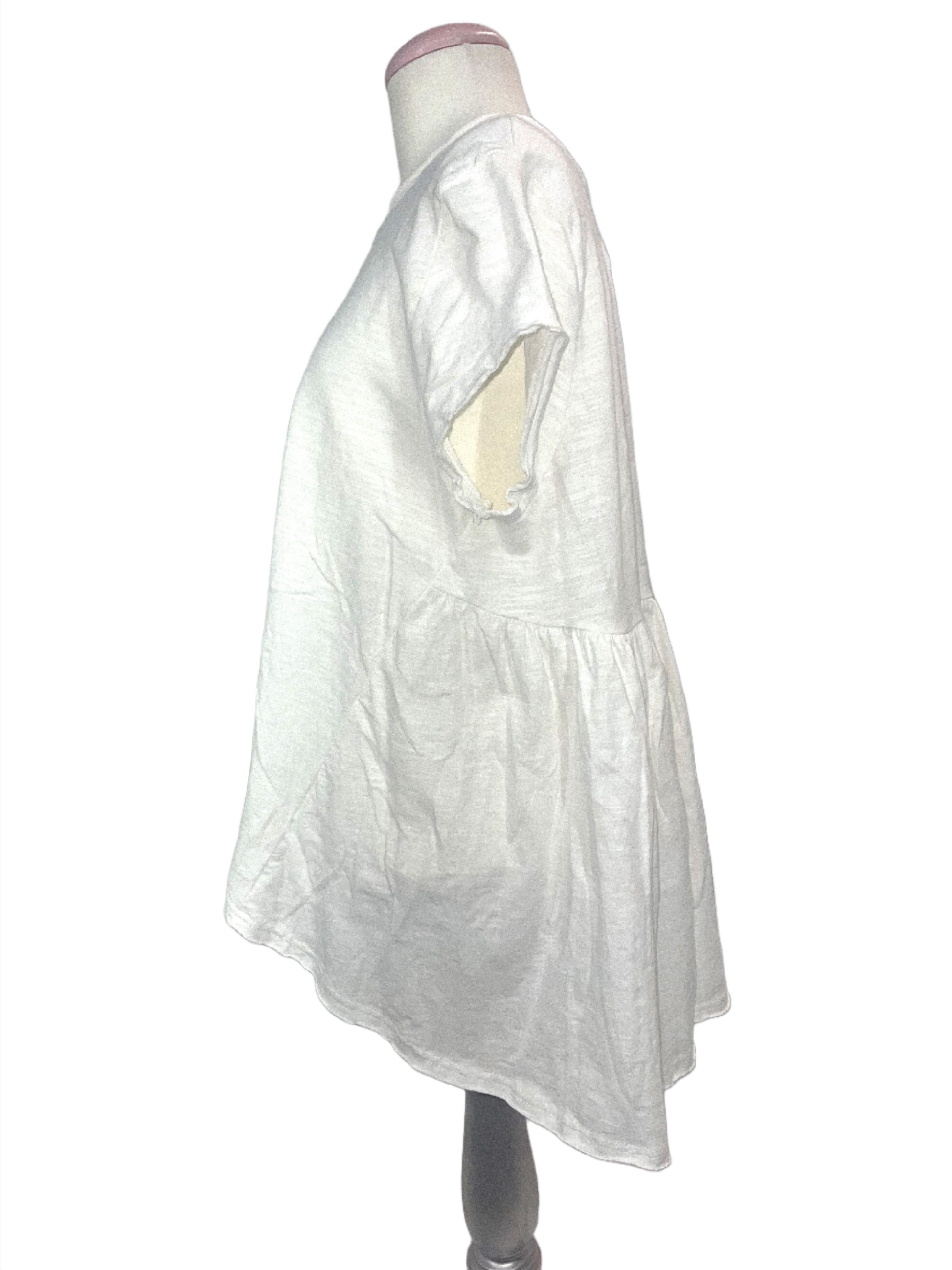 Whether worn on its own or layered, this classic white tunic pairs beautifully with jeans, leggings, or shorts for a chic and casual look. A must-have staple for any season!