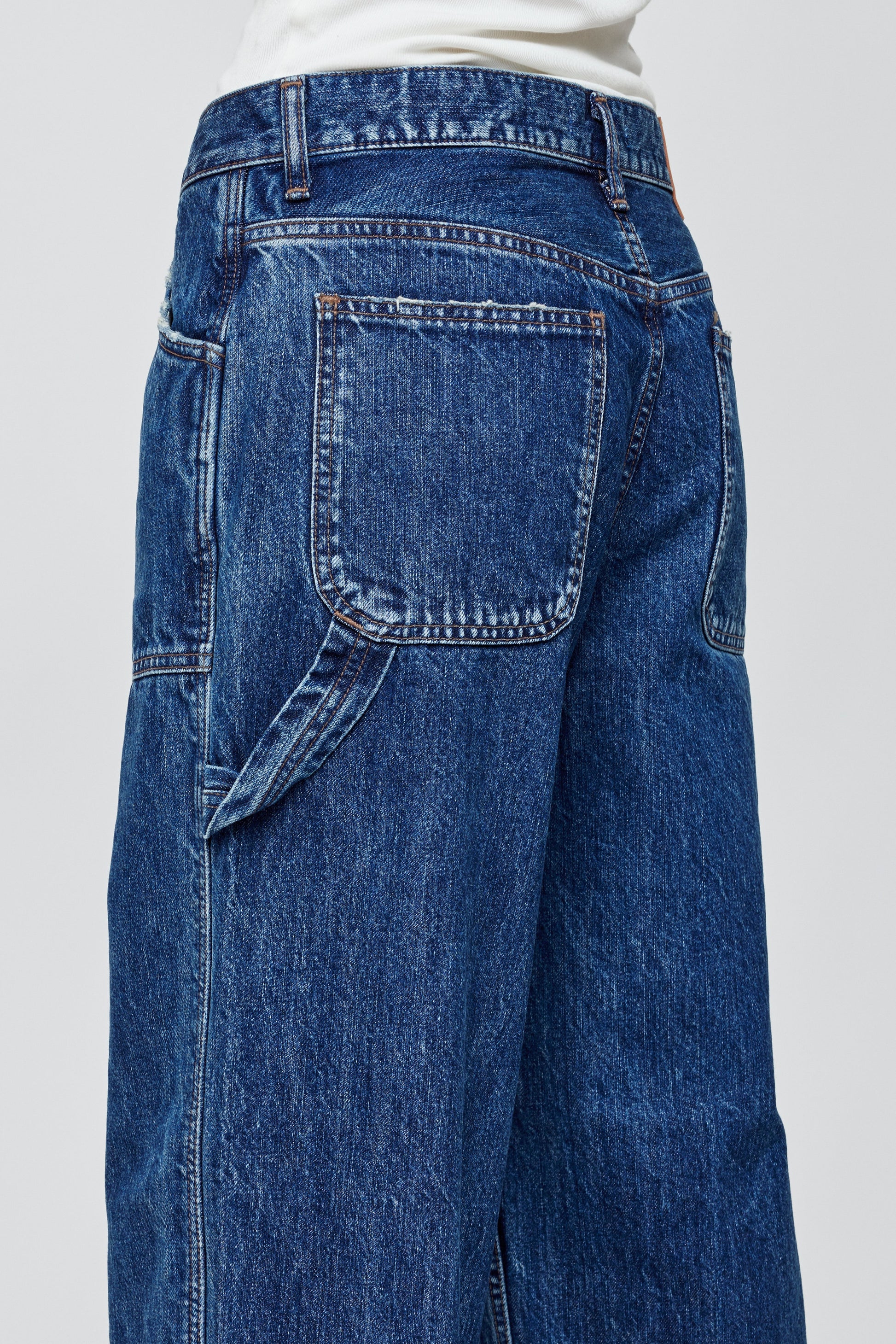 Crafted from premium Japanese denim, these Moussy Vintage Painter Pants deliver authentic workwear style with an elevated edge. The high-rise cut and full-length silhouette create a flattering, timeless look, while the substantial medium-heavy weight fabric ensures durability and structure. Pure cotton construction paired with a cowhide leather label adds refined craftsmanship details. True-to-size fit makes selection effortless. Machine wash cold and air dry to preserve the quality of this investment piece that seamlessly transitions from casual to elevated styling.